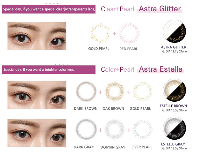 Clalen Astra 1-Day 由韓國國民女神秀智擔任品牌代言人。以偏向亞洲人眼球弧度設計,加上全球獨創ULTRA SOO高效鎖水技術:採用透明質酸鈉及GMMA作為保濕成份,有助防止鏡片表面的乾燥,增強隱形眼鏡的鎖水度,即使雙眼長期配戴,仍不會感到疲勞。