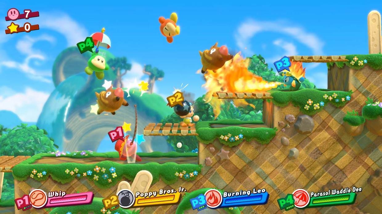 玩家控制的卡比可與敵人成為夥伴,通過「分享」Joy-Con可以操控夥伴,最大支援4人同時遊戲。除了星之卡比系列一貫的多樣的能力複製之外,玩家可以連續使出強力合體招式,和夥伴一起跨越阻擋去路的陷阱。