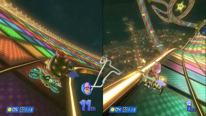任天堂角色All-Star總動員出戰,在賽車場上鬥個你死我活。在比賽時角色們大呼小叫,讓喜愛這些角色的玩家增加投入感。支援4人同時遊玩。