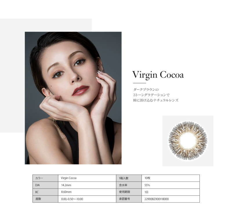 鏡片備有色素隔層,隔開鏡片染料,保護雙目。而且材質柔軟,含水量高,並有效減低紫外線對眼睛的傷害,持續長時間配戴亦感舒適。 日本Top 3人氣color contact lenses製造商PIA 旗下全新美瞳品牌Minette,為你打造動人美目! 品牌: Minette 直徑: 14.2mm 弧度: 8.6 mm 含水量: 55% 種類: 日拋 材質: 45% methafilconA 產地: 韓國 包裝: 1盒10片